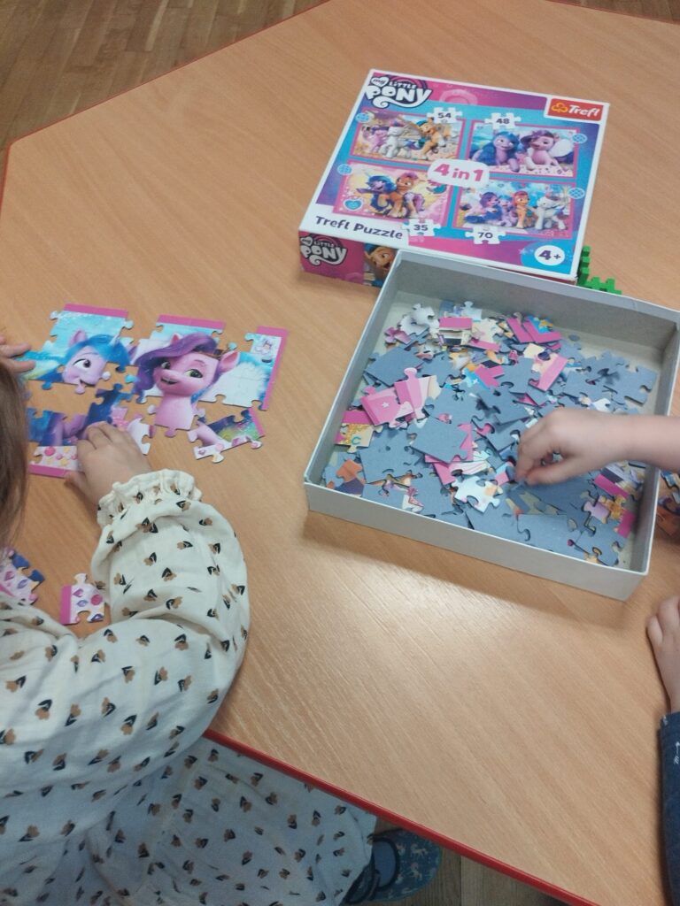 Dziś obchodzimy Dzień Puzzli. Z tej okazji zuchy żółte wysłuchały wiersza o puzzlach, odkrywały zalety ich układania. W czasie zajęć stworzyliśmy swoje własne puzzle, oraz układaliśmy te dostępne w sali przedszkolnej.