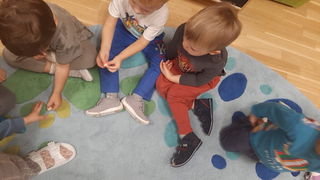 Podwieczorek to zazwyczaj najbardziej wyczekiwany posiłek- zawsze jest coś pysznego. Po podwieczorku jest czas na zajęcia indywidualne, zabawy swobodne, czy też utrwalanie zdobytej wiedzy.