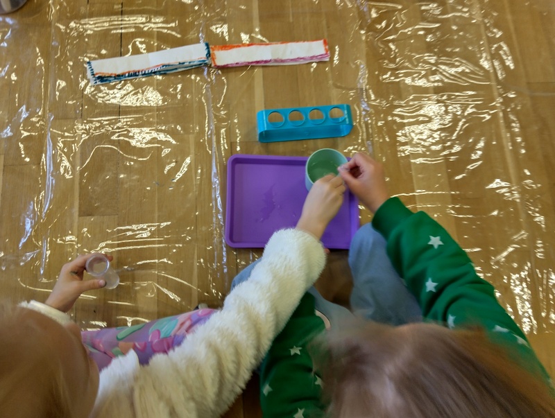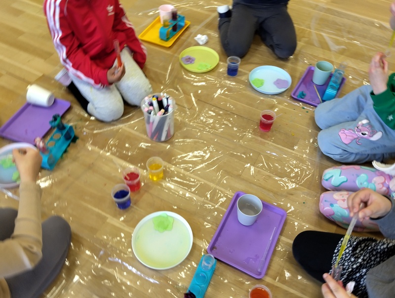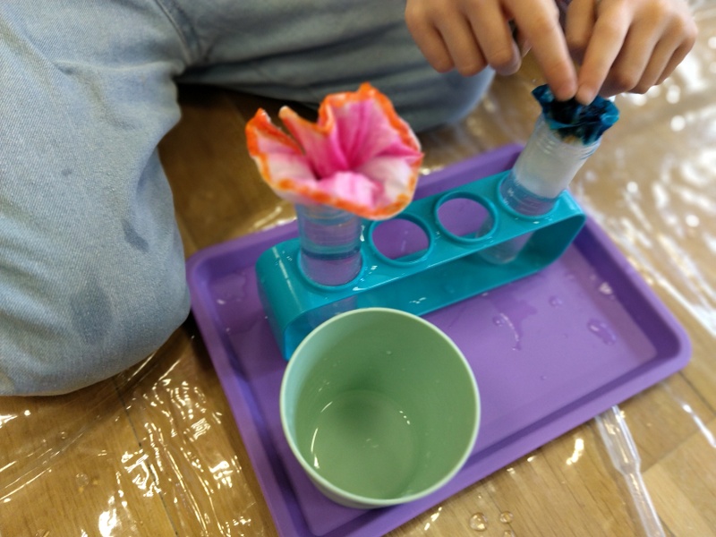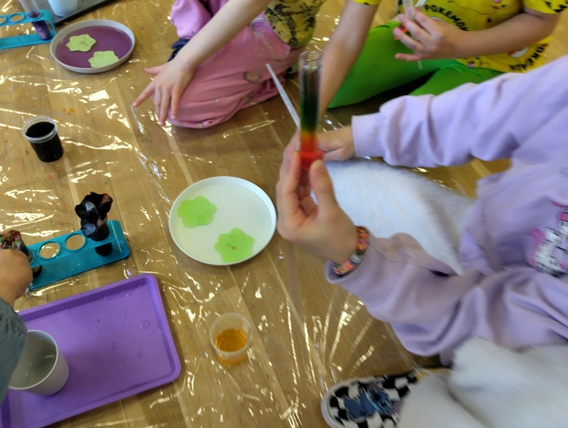 Podczas kwietniowych Eksperymentów z mamą Moniką zrobiło się kolorowo. Dzieci odkrywały moc drzemiącą w roślinkach. W czasie pasjonujących doświadczeń odkrywały, jak rośliny przewodzą wodę i co powoduje, że rozkwitają. Odpowiednie połączenie barwników pozwoliło uzyskać tęczę w probówce. Mamy nadzieję, że wkrótce w naszym ogródku zrobi się równie wiosenne i kolorowo