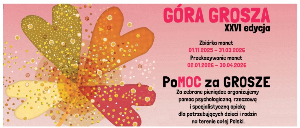 • 💰 Idea: uczestnicy (szkoły i przedszkola w całej Polsce) zbierają drobne monety — grosze — które symbolicznie tworzą „górę grosza”.