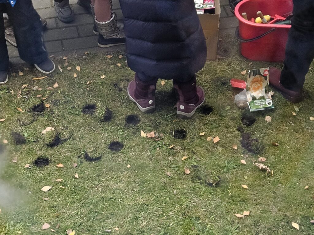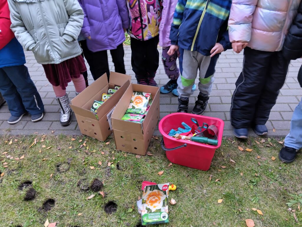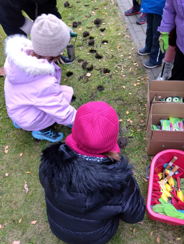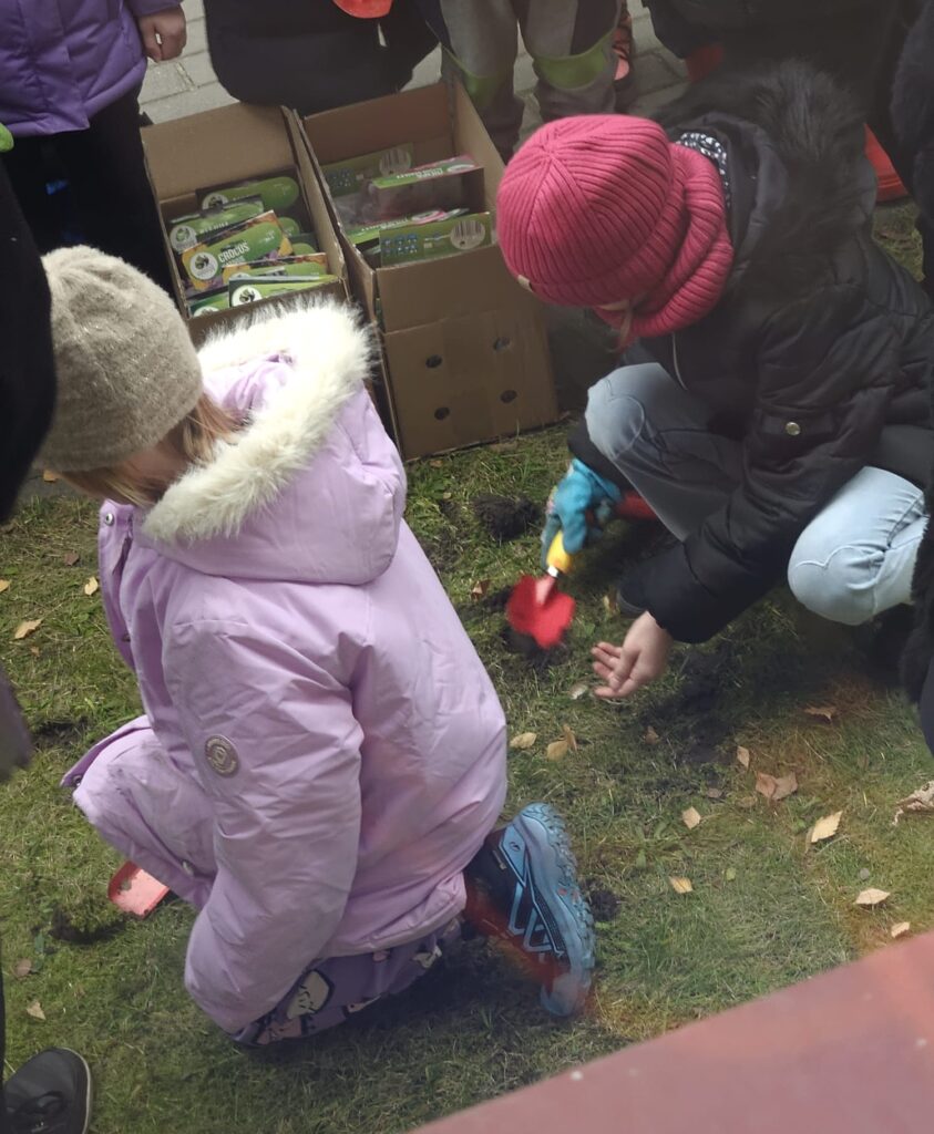 W czwartek, 4 grudnia dzieci z grupy 4 zasadziły w ogrodzie przedszkolnym cebulki, które otrzymały jako nagrodę w konkursie „Jesienne skarby w ogródku”. Mamy nadzieję, że wiosnę przywitamy z pięknymi krokusami, żonkilami, hiacynta mi i tulipanami. Dziękujemy Panu Piotrowi za pomoc w przygotowaniu otworów w ziemi.