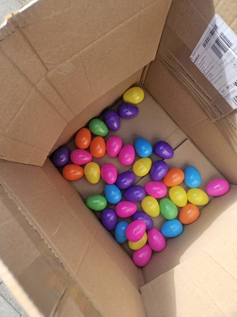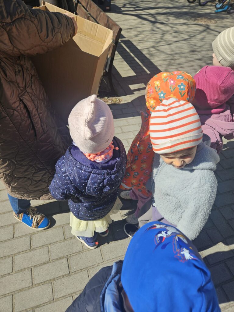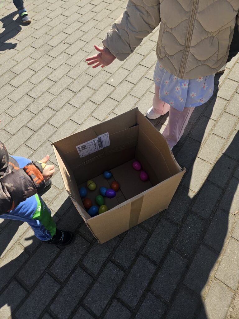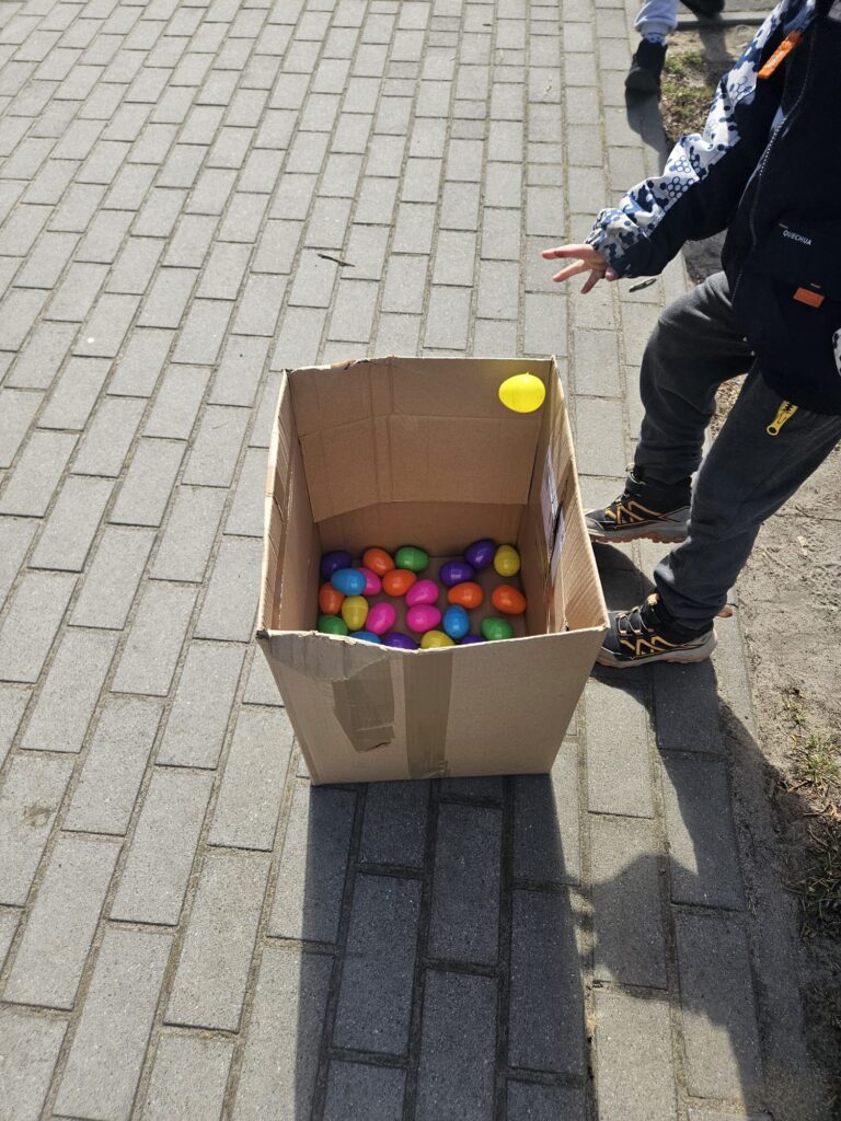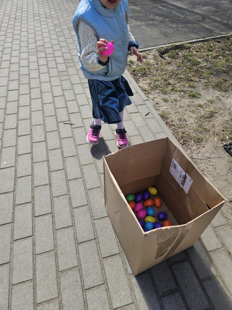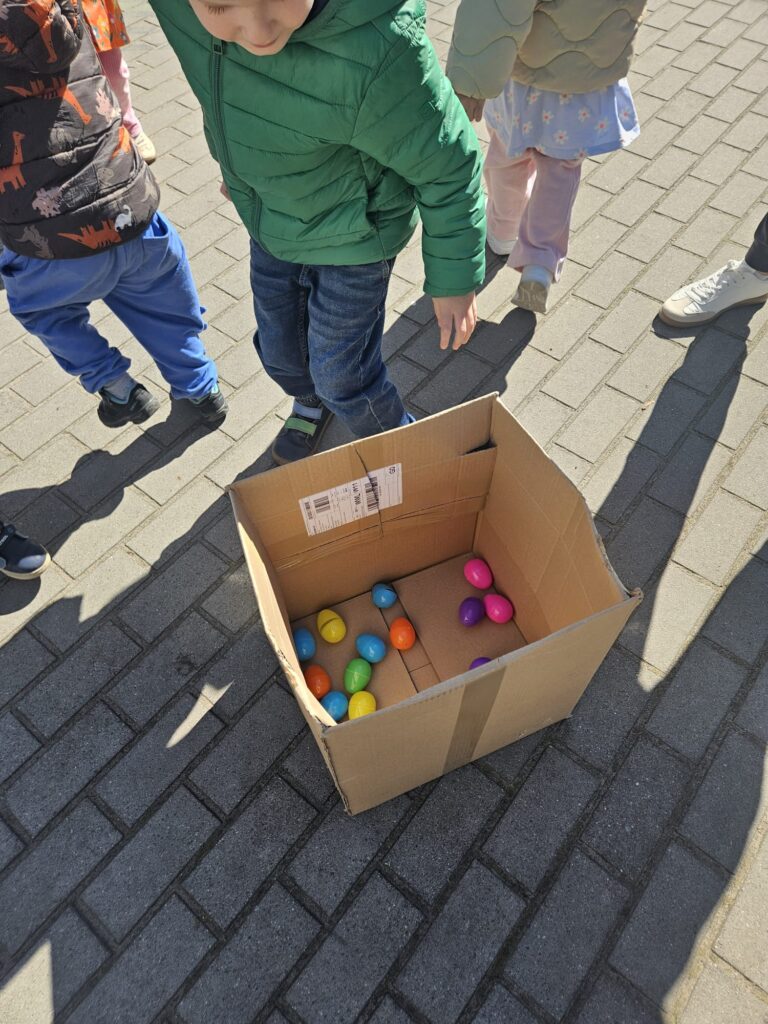 Dziś szukaliśmy kolorowych pisanek w naszym ogrodzie. Każda grupa miała do zebrania jak największą ilość jajek. Zabawa była bardzo emocjonująca i element rywalizacji dodał nam sił aby zebrać jak najwięcej pisanek. Najwięcej jajek zebrała grupa I i III Gratulujemy. W nagrodę Króliczek przyniósł do każdej grupy pojemniki z klockami . Super prezenty. A Pani Sylwii, Panu Piotrowi dziękujemy za przygotowanie zabawy niespodzianki.