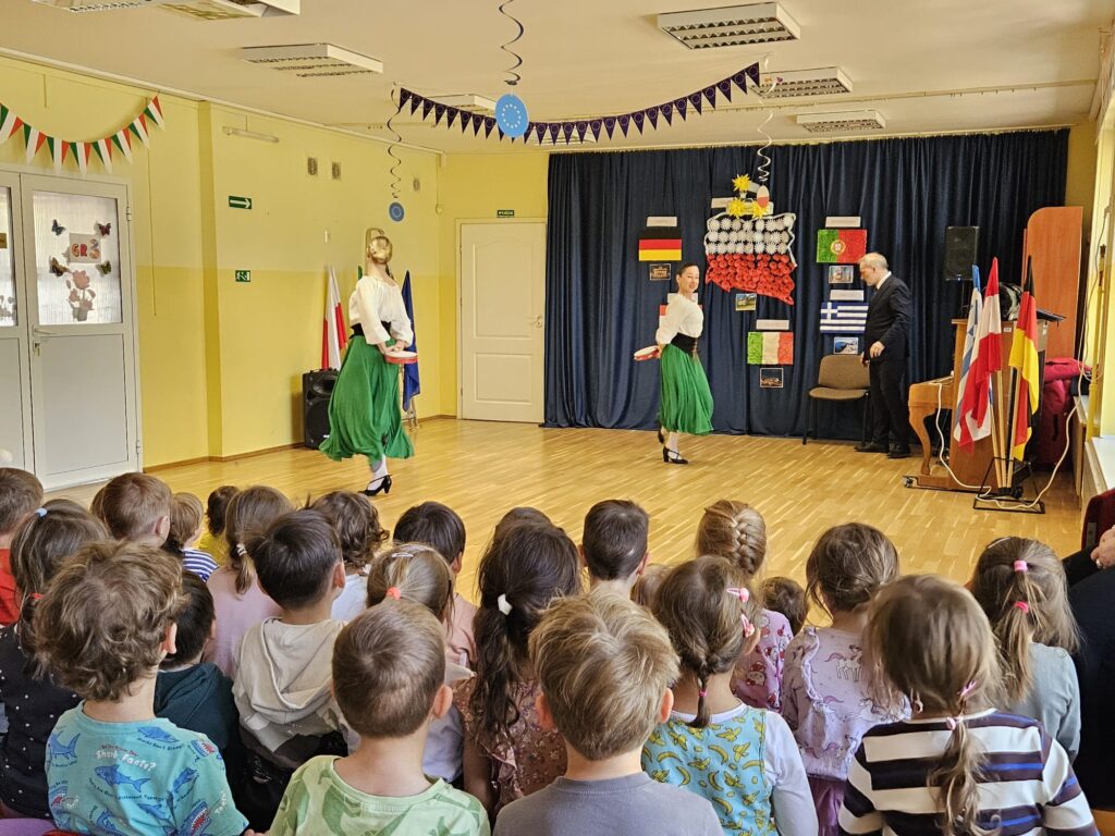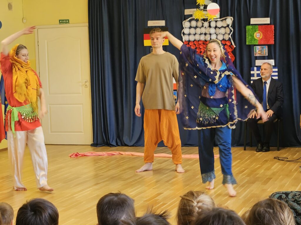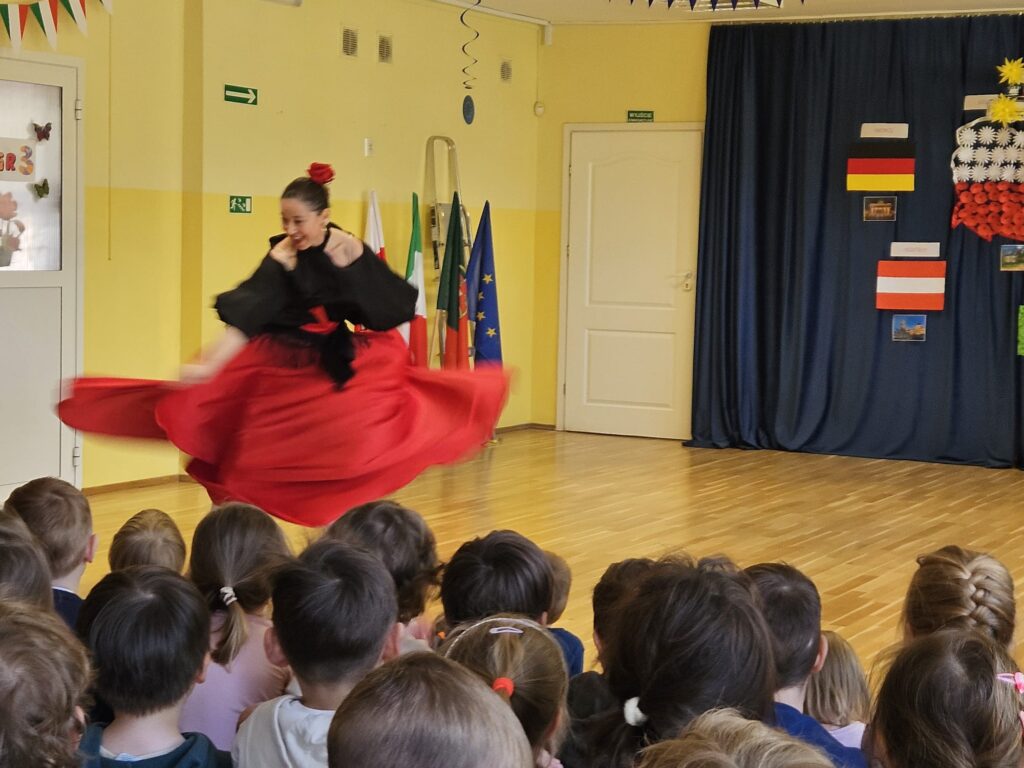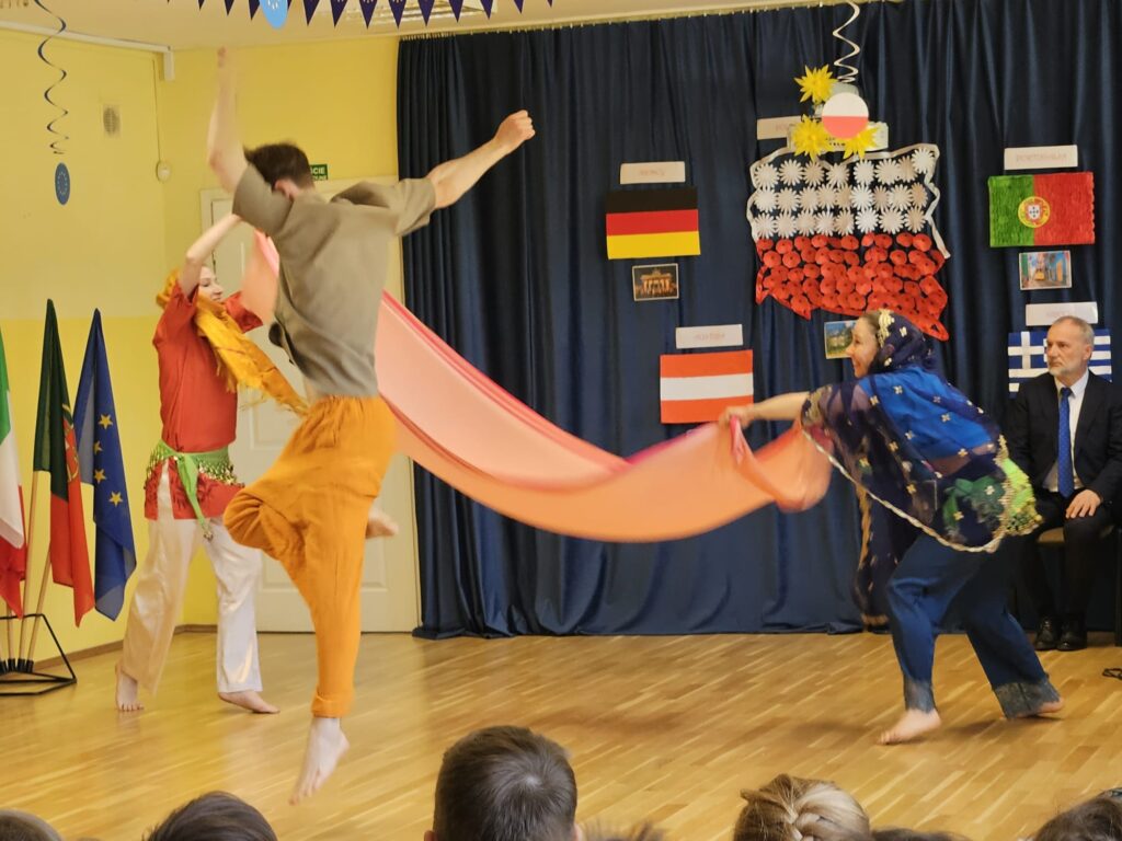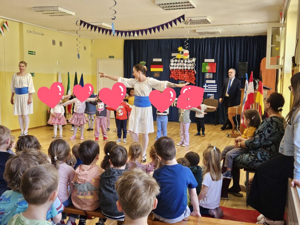 Wczoraj w Przedszkolu odbył się spektakl taneczny. Zapoznaliśmy się z różnymi charakterystycznymi tańcami z Grecji, Hiszpanii, Indii, Ukrainy, Włoch, Izraela. Z zaciekawieniem oglądaliśmy artystów .Mieliśmy również okazję na naukę podstawowego kroku do Zorby- greckiego tańca. Bardzo podobał się ten występ.