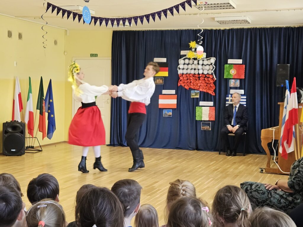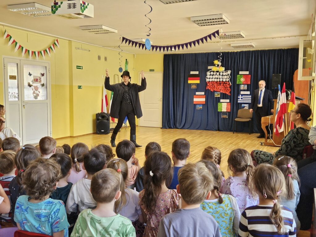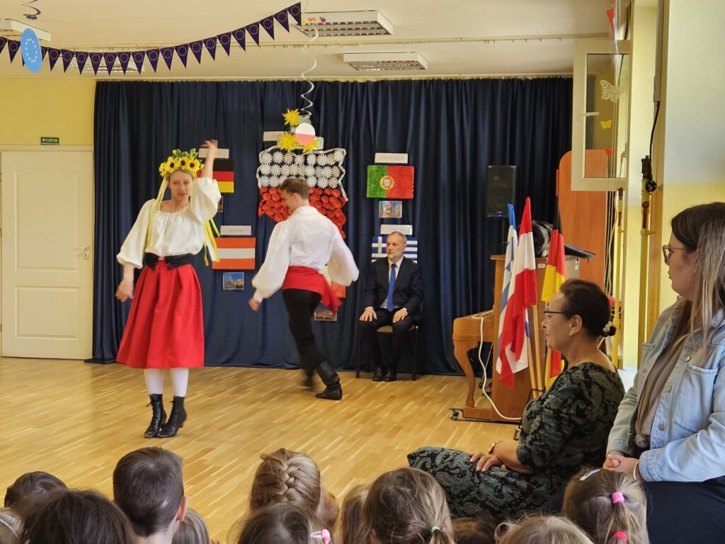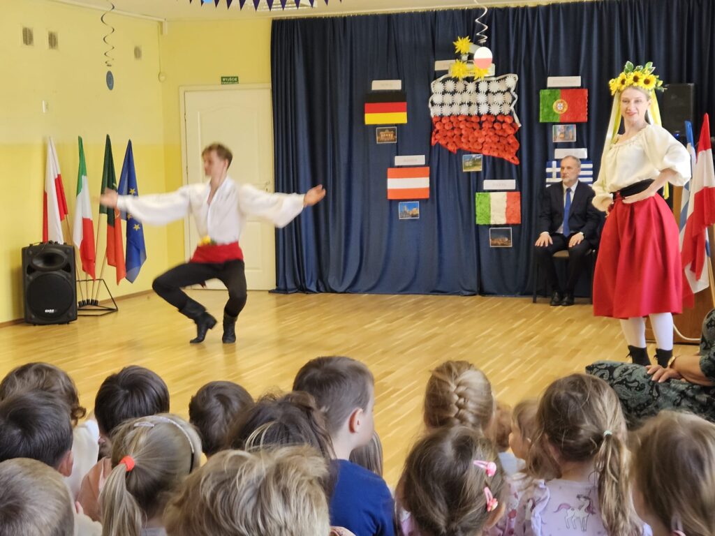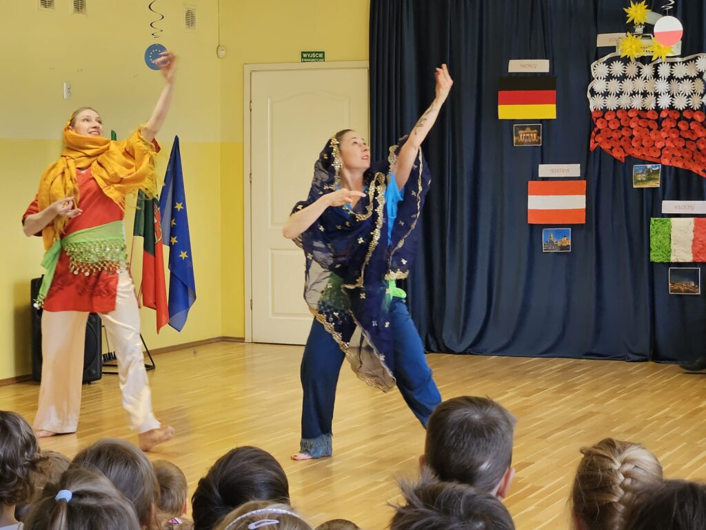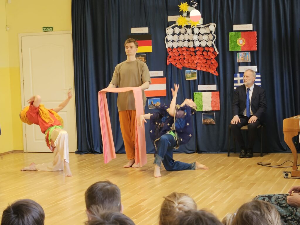 Wczoraj w Przedszkolu odbył się spektakl taneczny. Zapoznaliśmy się z różnymi charakterystycznymi tańcami z Grecji, Hiszpanii, Indii, Ukrainy, Włoch, Izraela. Z zaciekawieniem oglądaliśmy artystów .Mieliśmy również okazję na naukę podstawowego kroku do Zorby- greckiego tańca. Bardzo podobał się ten występ.