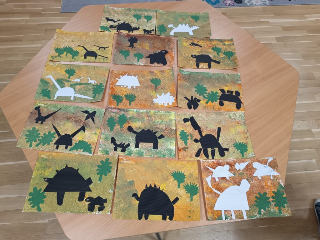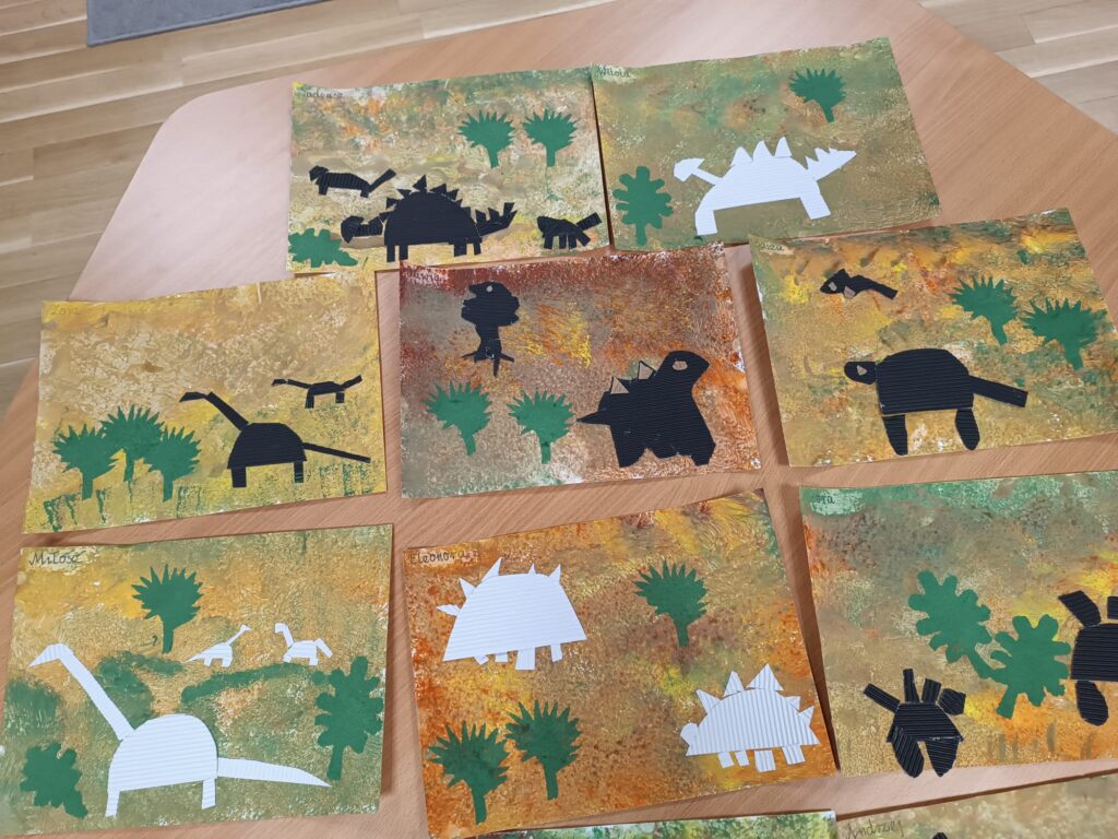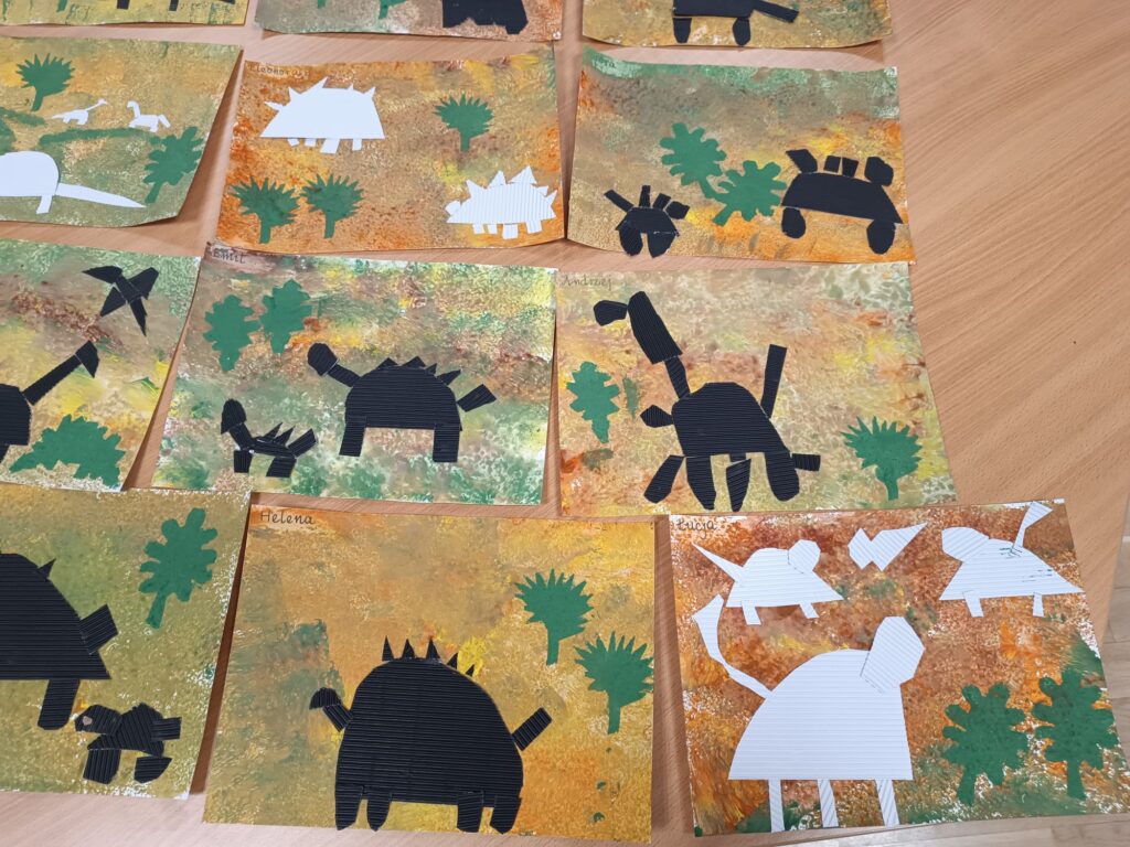 Dzięki naszym Paniom w grupach temat też również został pogłębiony. Cały tydzień eksperymentujemy z dinozaurami.