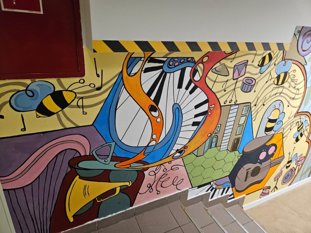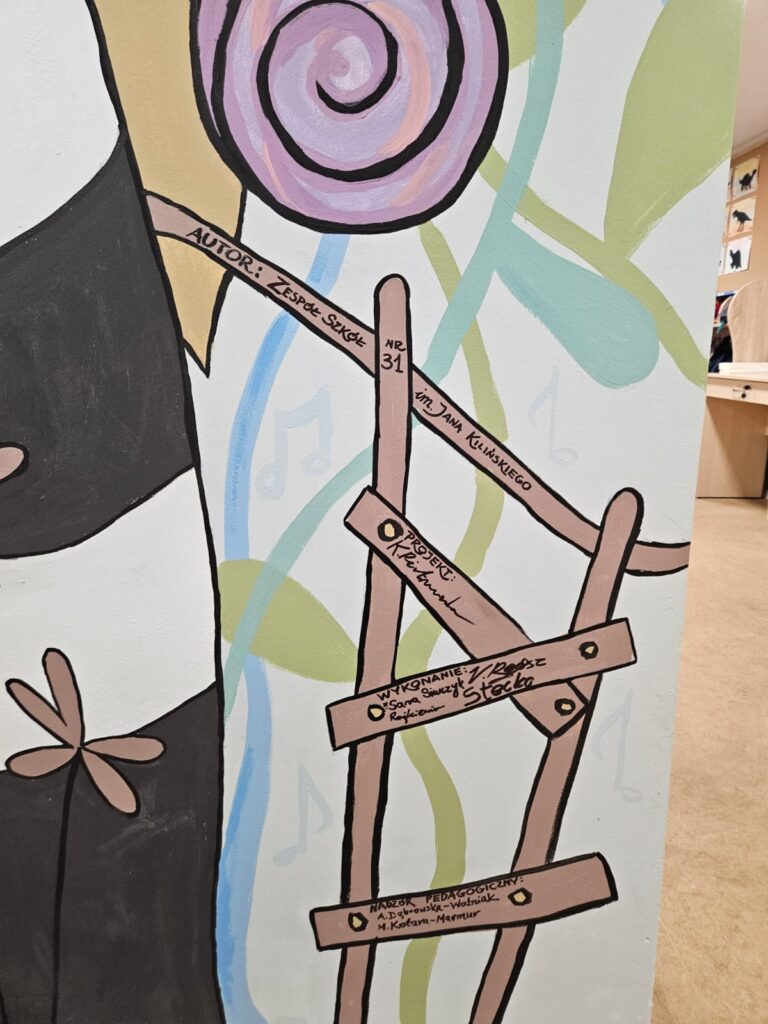 Dzięki współpracy z Zespołem Szkół Nr 31 im. Jana Kilińskiego mamy piękny mural na ścianie w szatni.