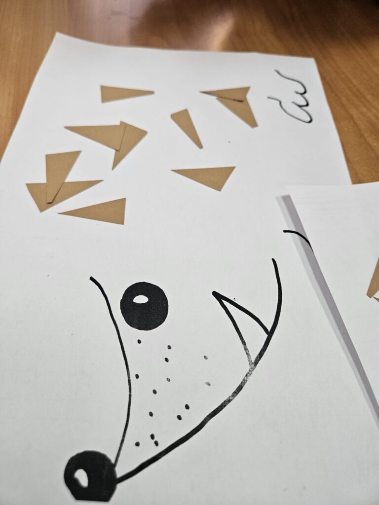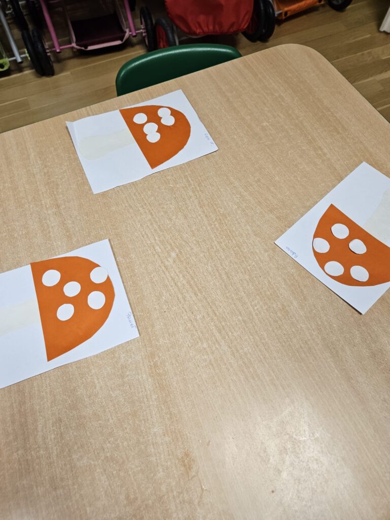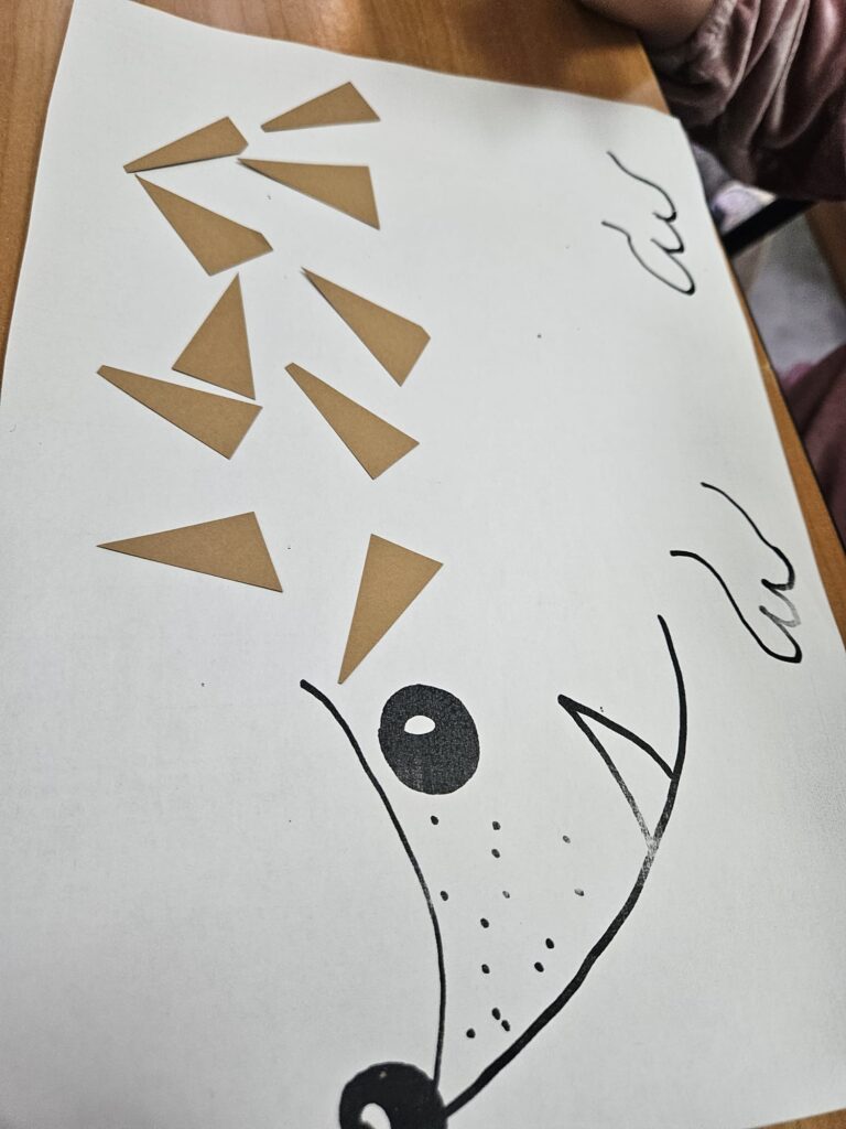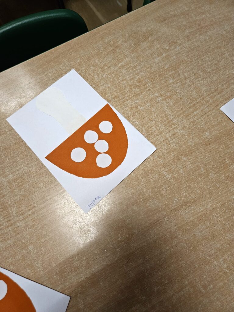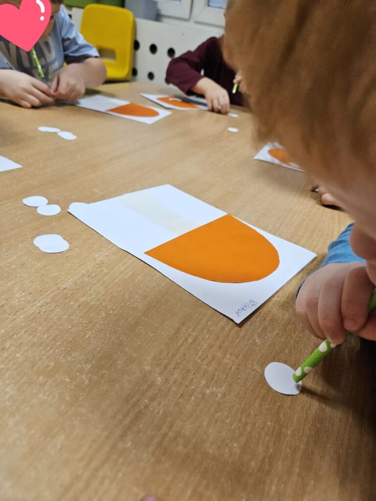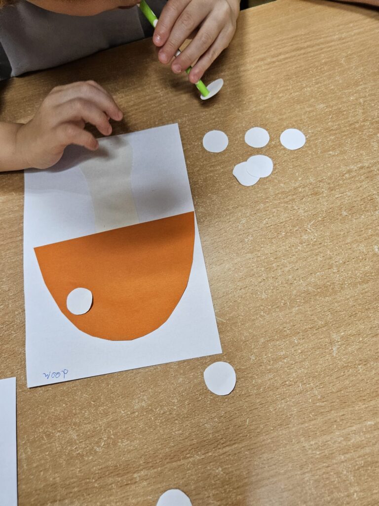 Na zajęciach z Panią Edytą zawsze jest interesująco. Wysłuchaliśmy bajki logopedycznej „Grzybobranie” ćwicząc język i wargi. Po zakończonej gimnastyce wykonywaliśmy ćwiczenia oddechowe. Aspirowaliśmy oddechem przy użyciu słomki ,kropki na muchomora. Nie było to łatwe, ale daliśmy radę.
