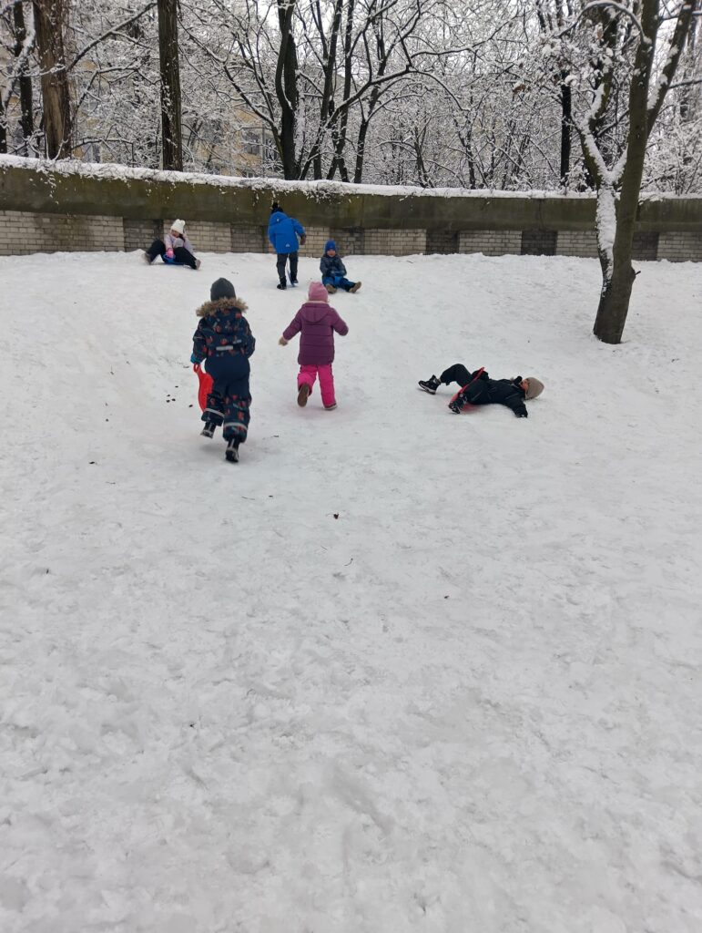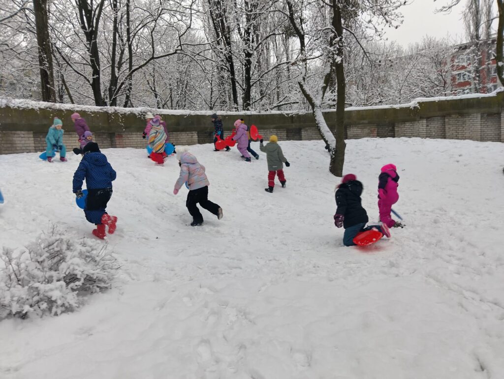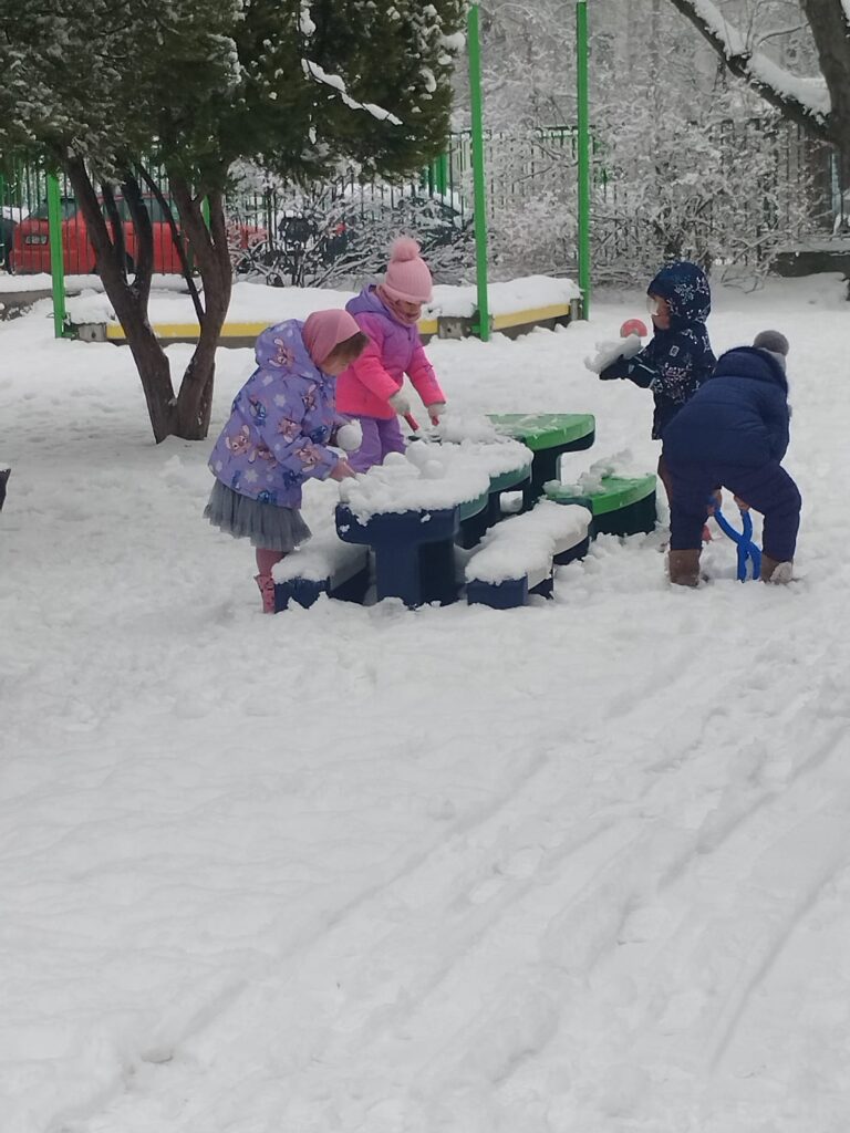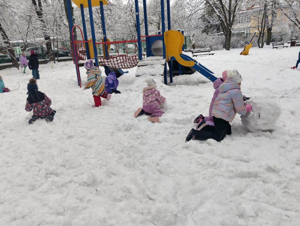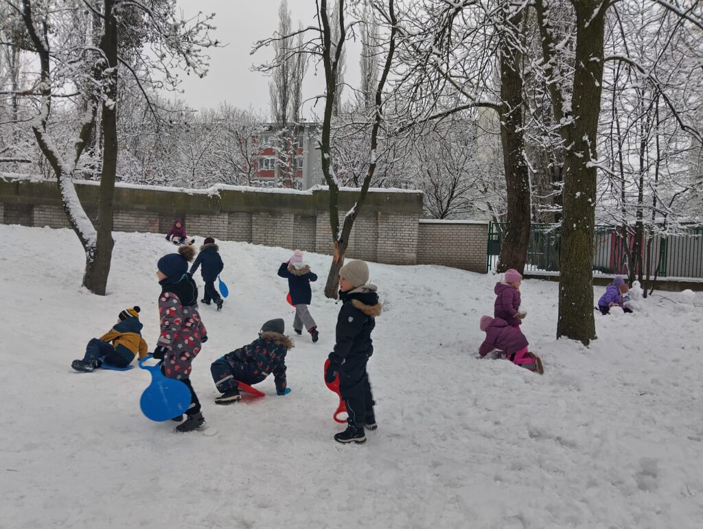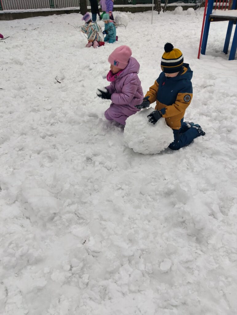 Zabawy na śniegu dostarczyły maluchom dużo radości, sprzyjały aktywności ruchowej, rozwijały koordynację, wzmacniały mięśnie barku, ramion. A obiad po takiej zabawie smakował wszystkim.